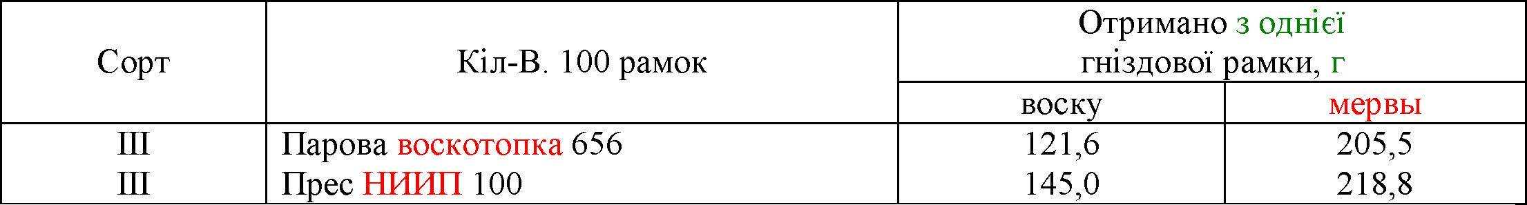 Відділ бджільництва поставив досвід, щоб визначити вихід воску на паровий воскотопке з однієї гніздової рамки. Результати досвіду наведені в таблиці 19.