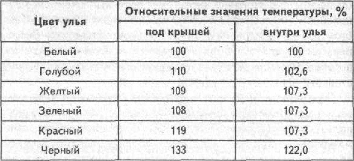 З фізики відомо, що ступінь нагрівання пофарбованої поверхні сонячними променями залежить від цвіту фарбування. Вплив цвіту вулика на ступінь його нагрівання на відкритій місцевості було досліджено в натурному експерименті. Як еталон використовувався вулик білого цвіту, у якому в середньому за день темлература становила під дахом 28 °С, усередині вулика — 27 °С (Нестерводский В.А., 1971).