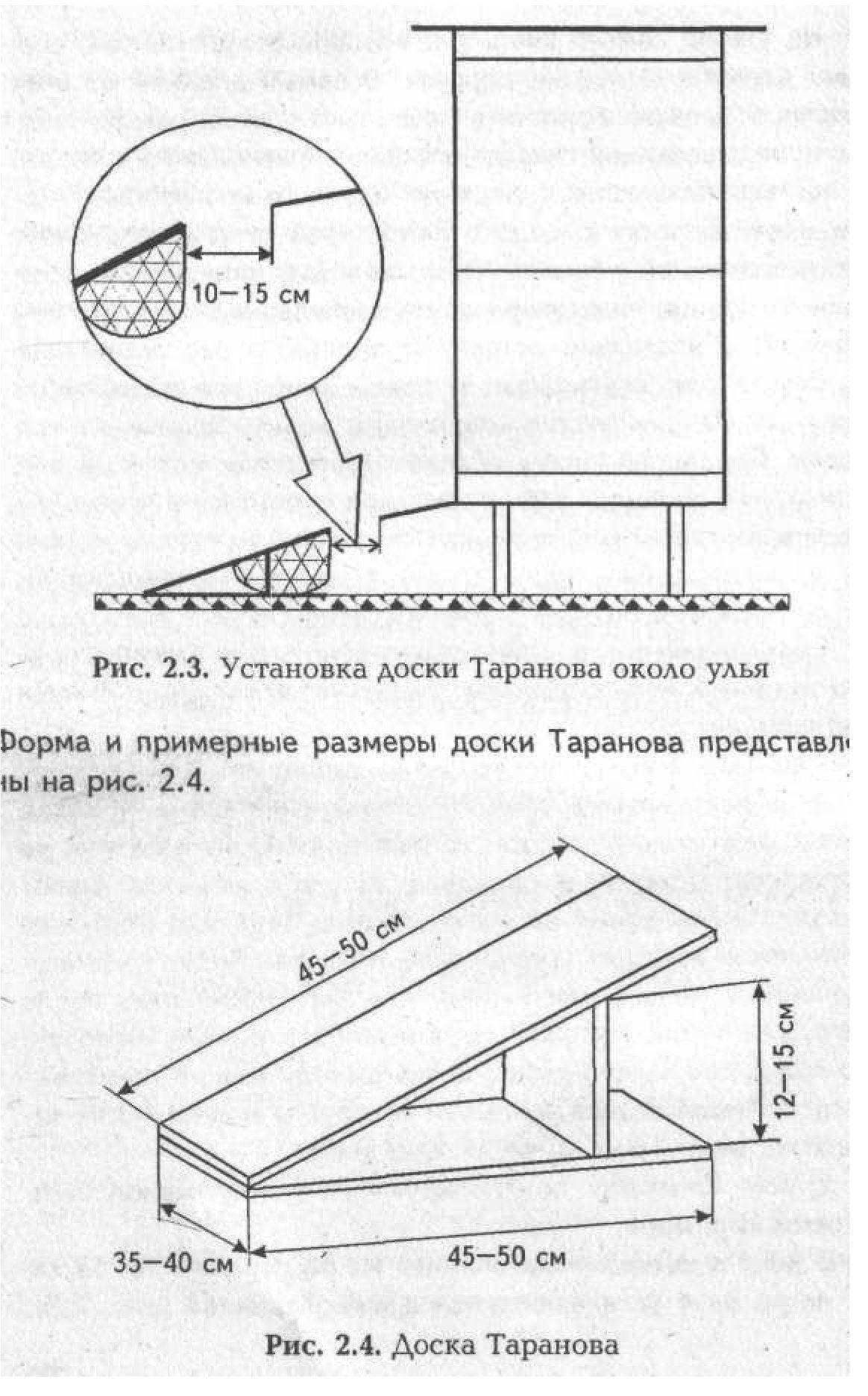 У день із гарним летом бджіл на відстані 10-15 див від льотка вулика встановлюється дошка Таранова (мал. 2.3).
