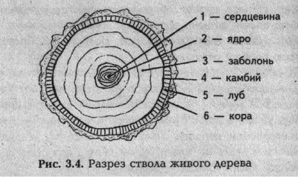 Рис. 3.4. Разрез ствола живого дерева